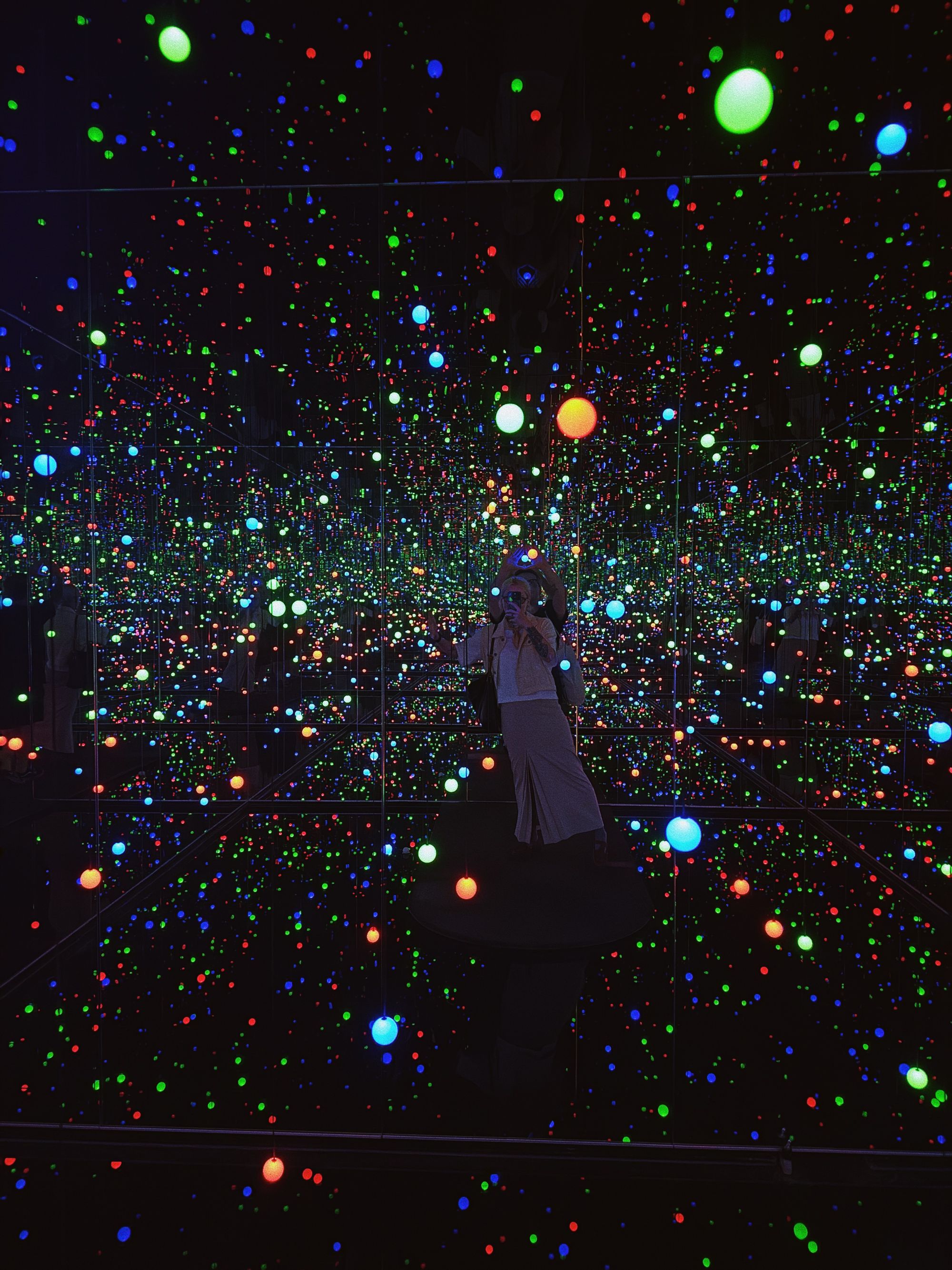 Od kiedy zrozumiałam idee stojące za sztuką Yayoi Kusamy, które opisałam obszernie tutaj, powziąłem sobie wewnętrzną misje, aby w miarę możliwości odwiedzać wszystkie galerie i przestrzenie w których znajdę jej dzieła. Prawie już 100-letnia artystka pozostaje aktywna zawodowo, więc stale powiększa swoją kolekcje. Oby robiła to jak najdłużej!
