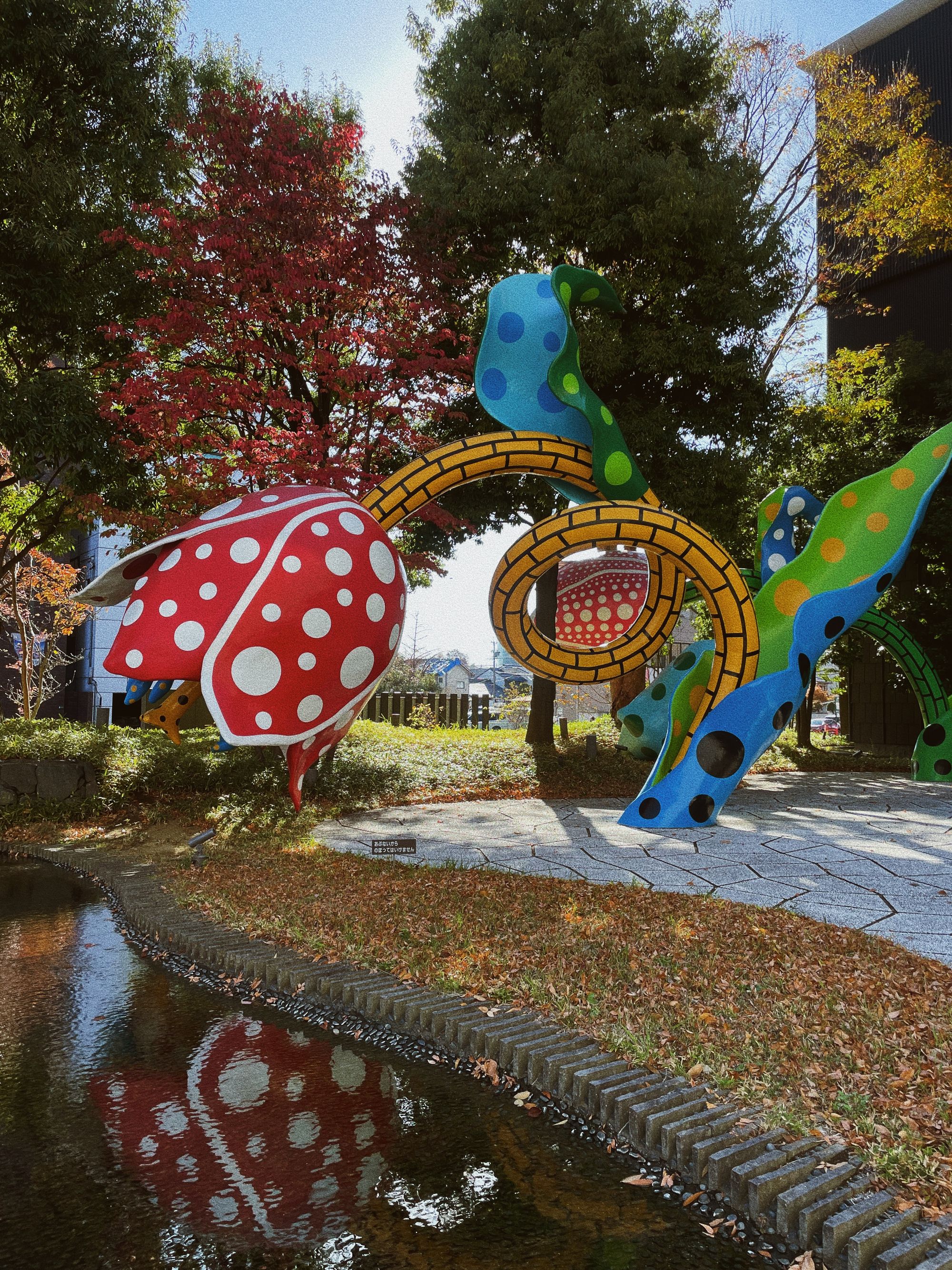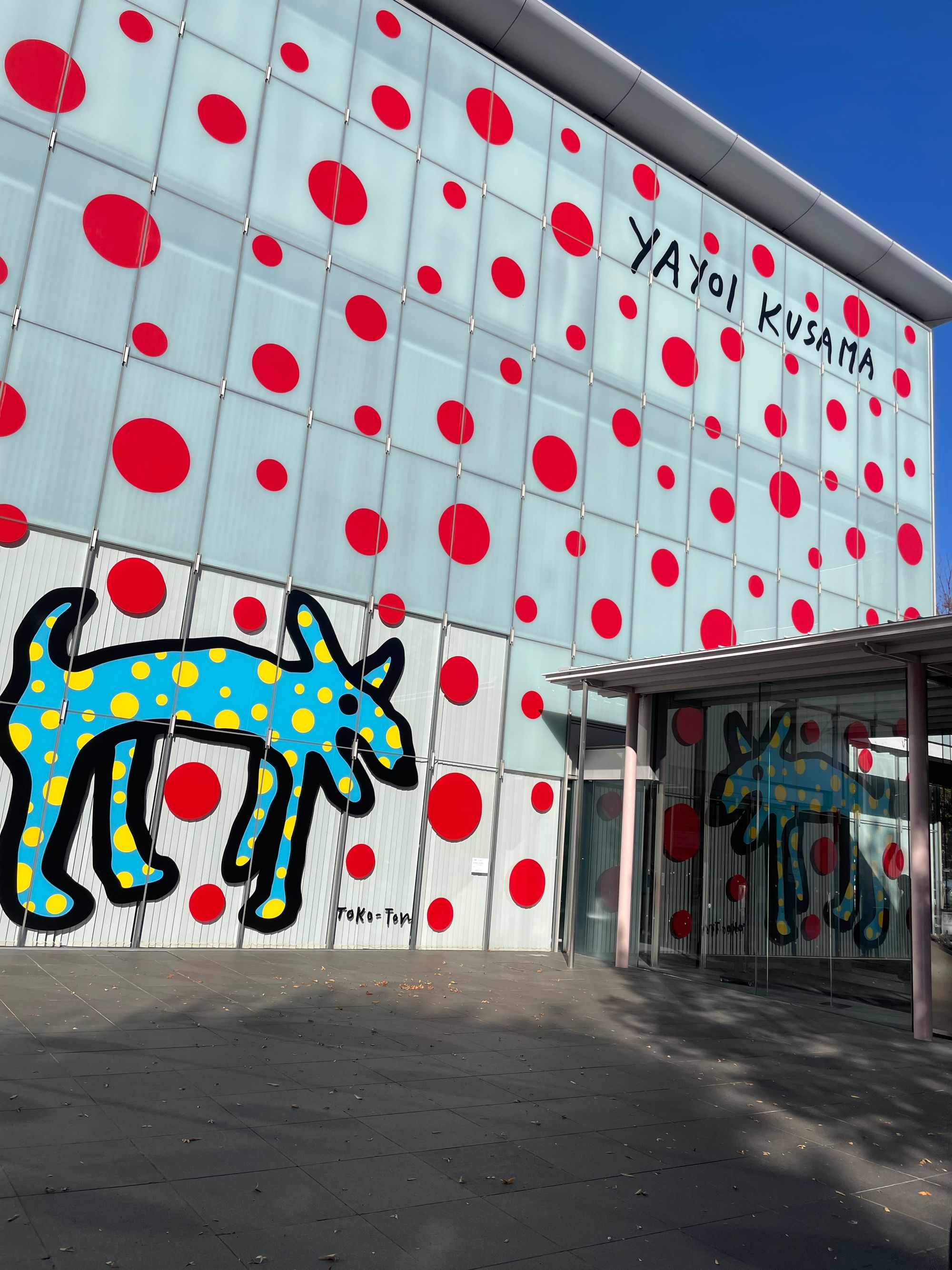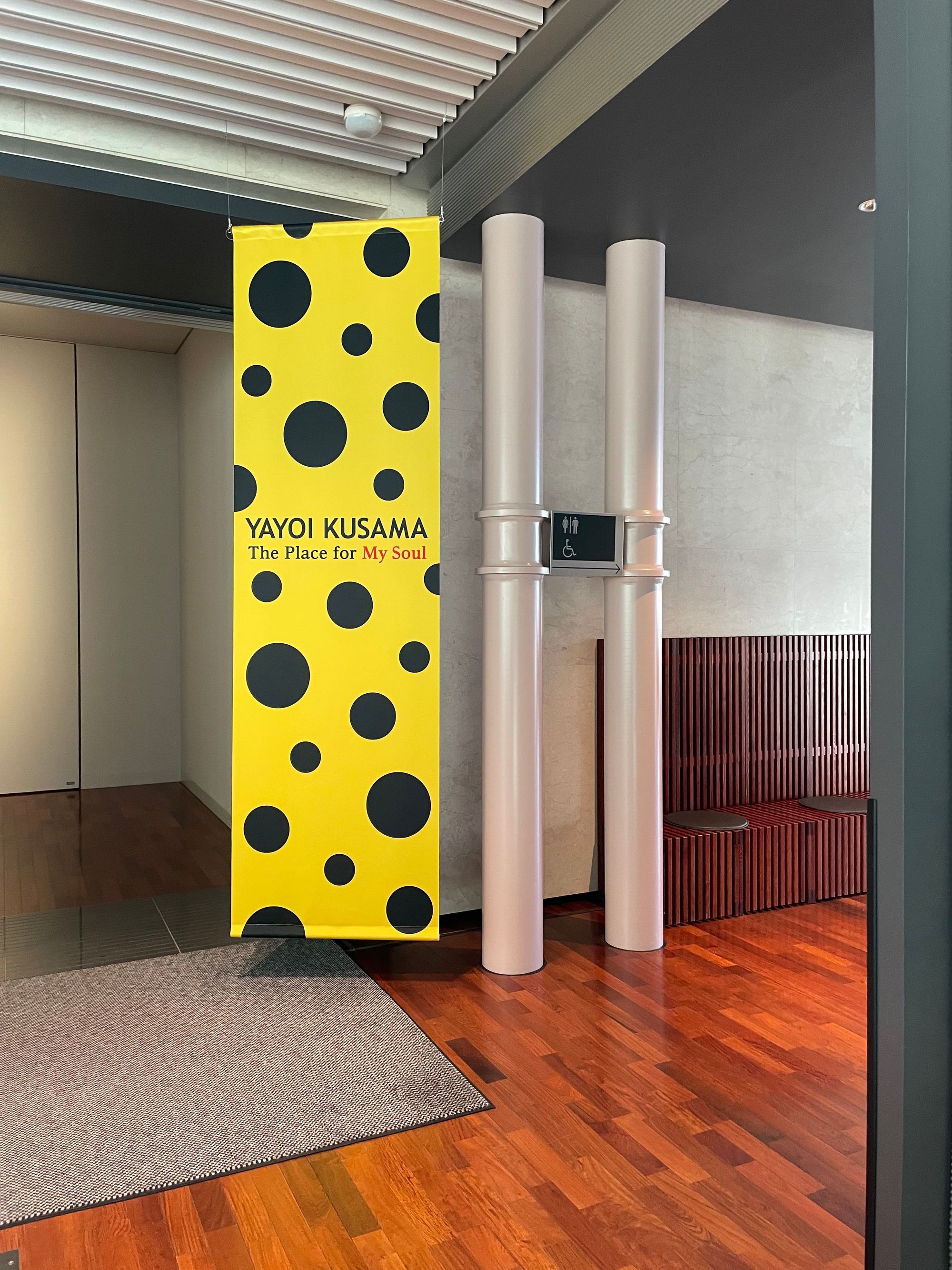 Podczas mojej wizyty w budynku odbywała się wystawa: Yayoi Kusama: The place for my soul - jest to wystawa stała, którą odwiedzić możecie również w tym momencie. Znajduje się na niej sporo wczesnych prac Kusamy, aby mocniej zaznaczyć jej przynależność oraz korzenie związane z tym miastem.